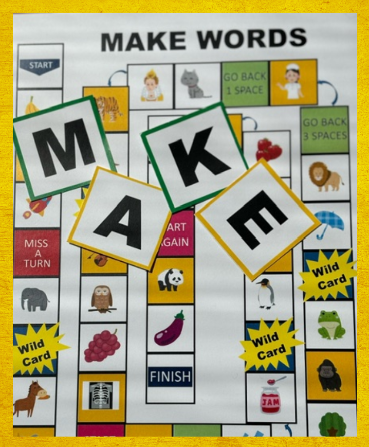 (すごろくシートA4 1枚 単語作成シートA3 10枚 アルファベットカード8枚*)*アルファベットカードは192枚のカードに切り分けてご使用ください。